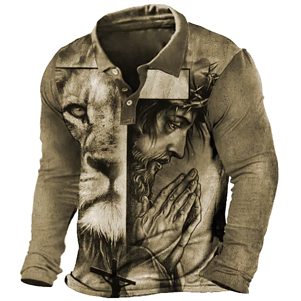Men's Golf Shirt 3D Print Cartoon Lion Turndown Green Blue Gray Camel Outdoor Street Button-Down Print Long Sleeve Tops Designer Casual Retro Nostalgic
