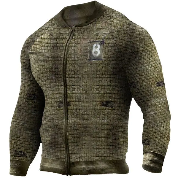 new european and american new men's long-sleeved creative retro 3d printing outdoor casual men's sweater