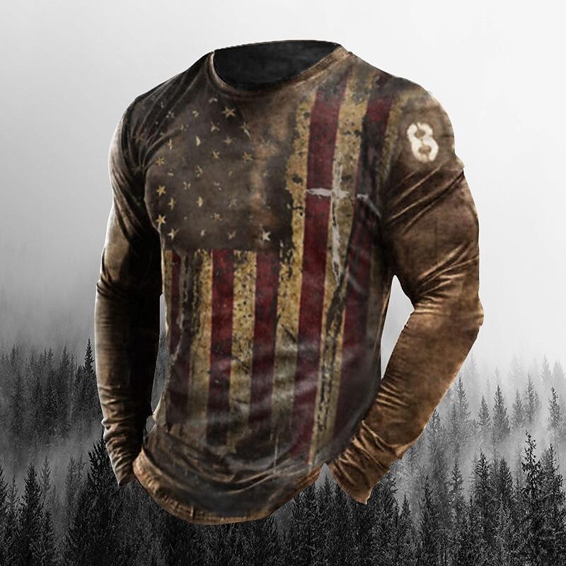 spring and autumn new men's 3d fashion american flag trend printing sweater