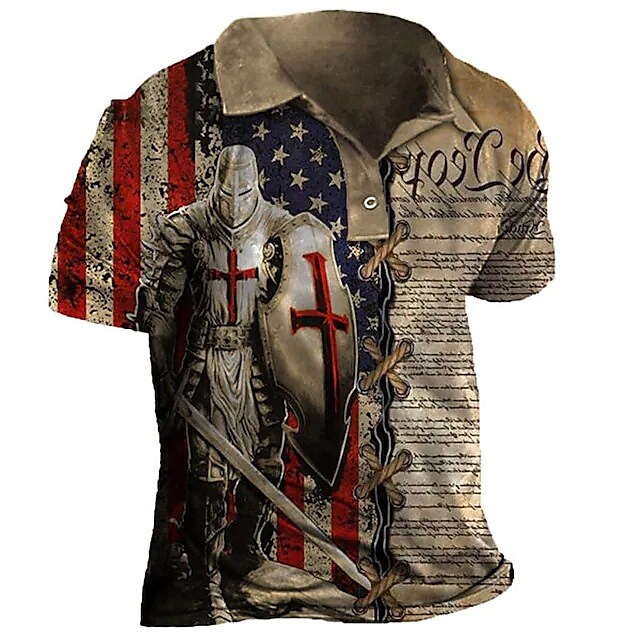 Men's Unisex T shirt Tee 3D Print Graphic Prints National Flag Hooded Street Daily Button-Down Print Short Sleeve Tops Designer Casual Big and Tall Papa T Shirts Black Army Green Brown / Summer