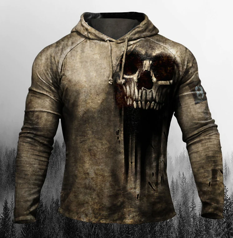 Men's T shirt Tee 3D Print Graphic Patterned Skull Crew Neck Street Daily Long Sleeve Tops Casual Fashion Brown