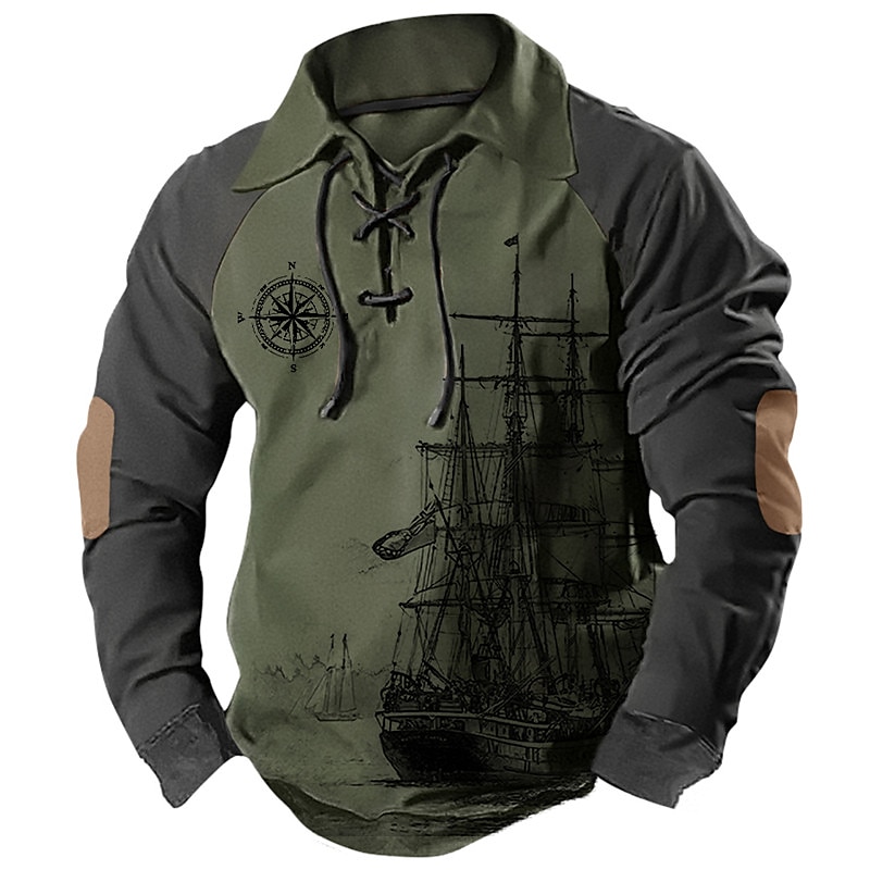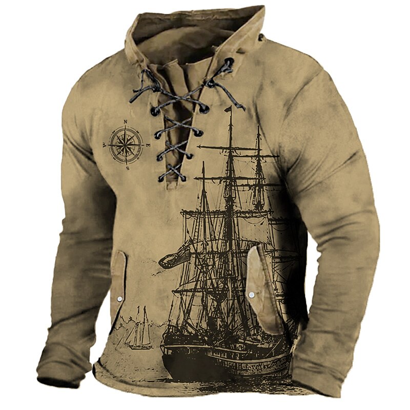 Ship Nautical Graphic Prints Daily Classic Casual Men's 3D Print Sweatshirt Pullover Holiday Going out Streetwear Sweatshirts Black Blue Brown Stand Collar Drawstring Print Spring & Fall Designer
