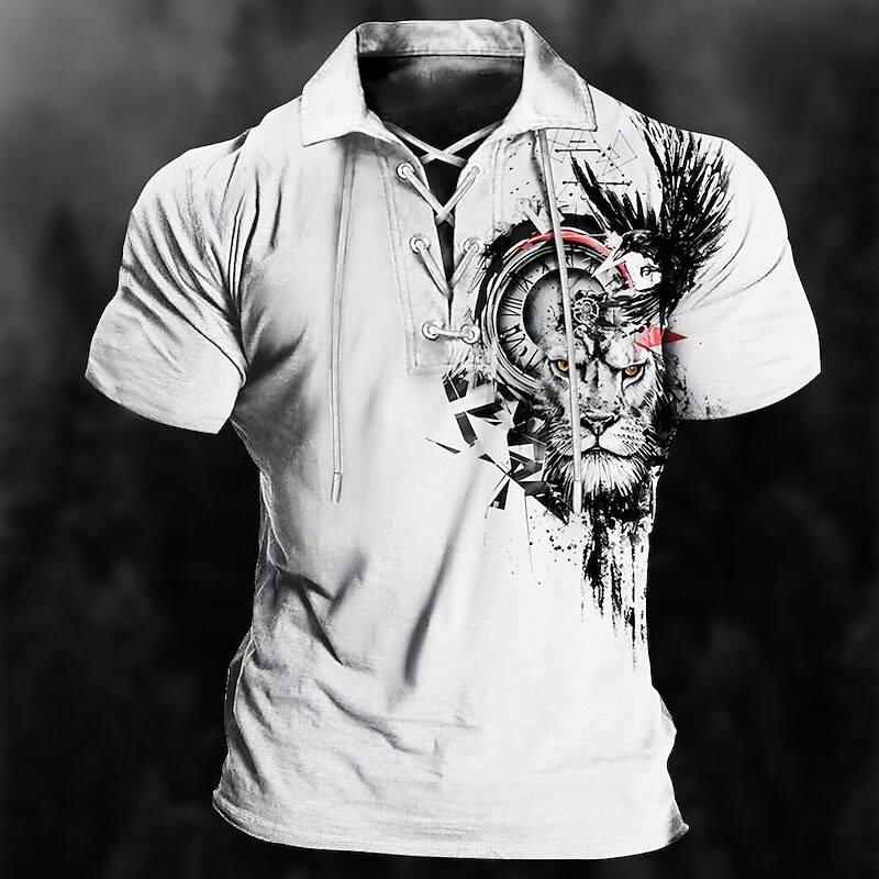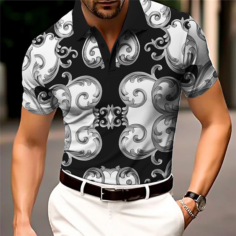 Men's Polo Shirt Golf Shirt Graphic Prints Totem Turndown Black White Outdoor Street Short Sleeve Drawstring Print Clothing Apparel Sports Fashion Streetwear Designer
