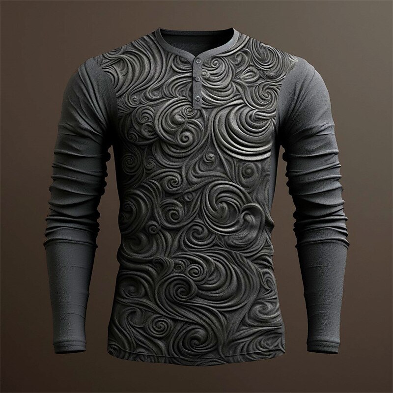 Graphic Relief Pattern Fashion Daily Casual Men's 3D Print Henley Shirt Casual Holiday Going out T shirt Green Dark Blue Dark Gray Long Sleeve Henley Shirt Spring & Fall Clothing Apparel S M L XL