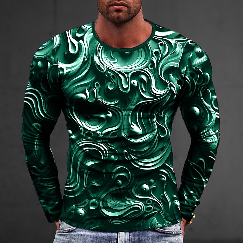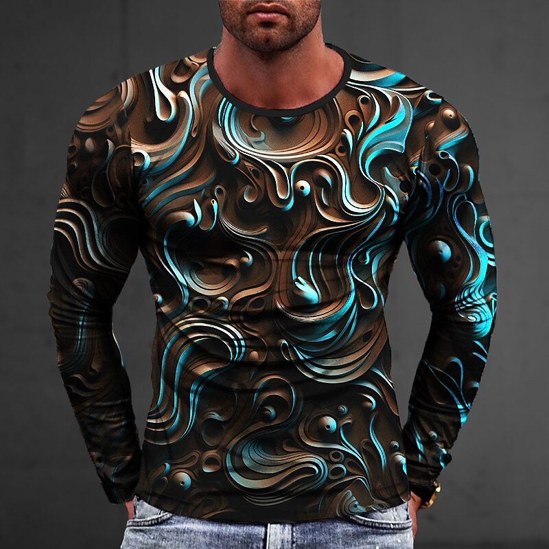 Graphic Abstract Fashion Designer Casual Men's 3D Print T shirt Tee Sports Outdoor Holiday Going out T shirt Silver Black White Long Sleeve Crew Neck Shirt Spring & Fall Clothing Apparel S M L XL