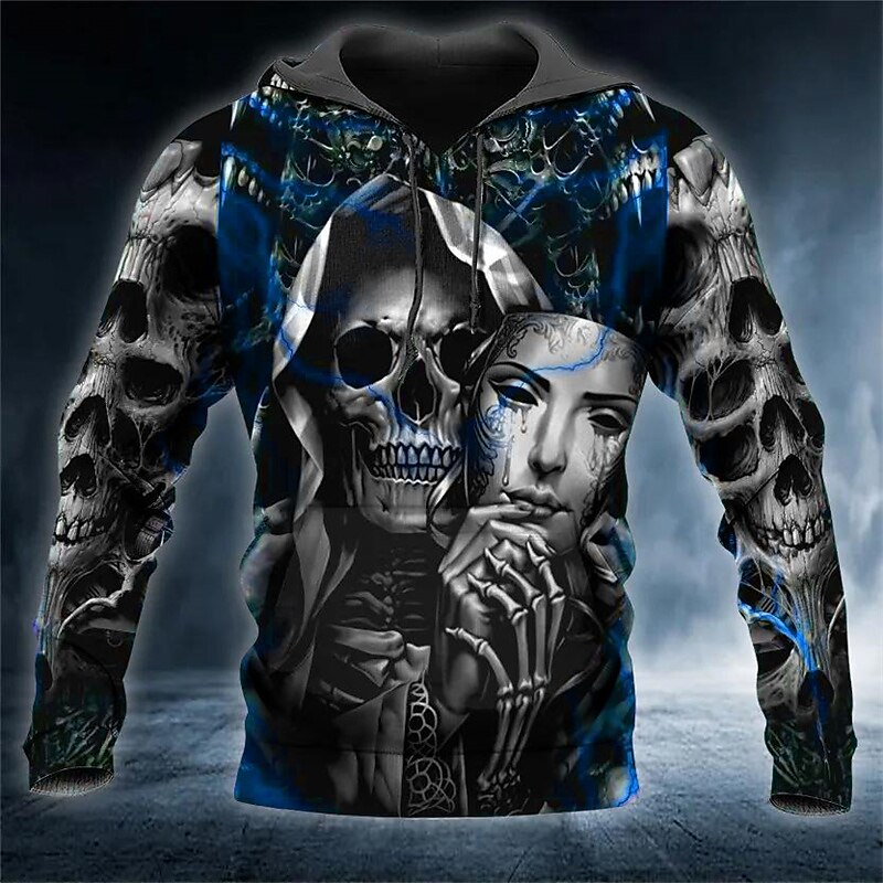 Graphic Skull Men's Fashion 3D Print Hoodie Sports Outdoor Holiday Vacation Hoodies Red Blue Hooded Print Front Pocket Spring & Fall Designer Hoodie Sweatshirt