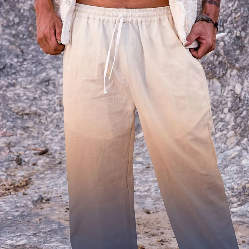 Men's Basic Folk Style Straight Print Full Length Pants Home Daily Inelastic Print Mid Waist White S M L XL XXL