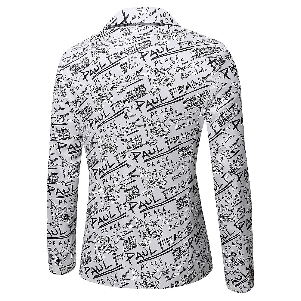 Men's Blazer Regular Print Coat White Black Khaki Business Party / Evening Fall Single Breasted One-button Turndown Regular Fit M L XL 2XL 3XL / Spring / Long Sleeve / Letter