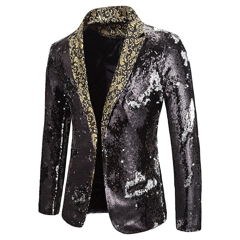 Men's Blazer Regular Sequins Pocket Coat Black Blue Purple Gold Red Casual Party Fall Single Breasted One-button Peaked Lapel Regular Fit S M L XL XXL / Winter / Long Sleeve