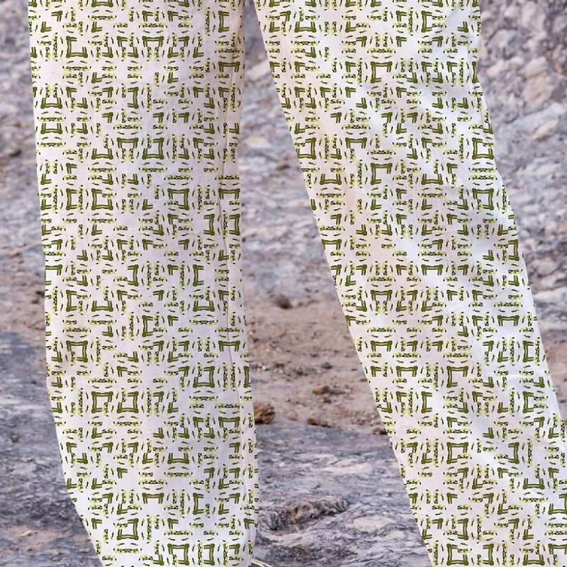 Men's Casual Folk Style Straight Print Full Length Pants Home Daily Inelastic Print Mid Waist White S M L XL XXL