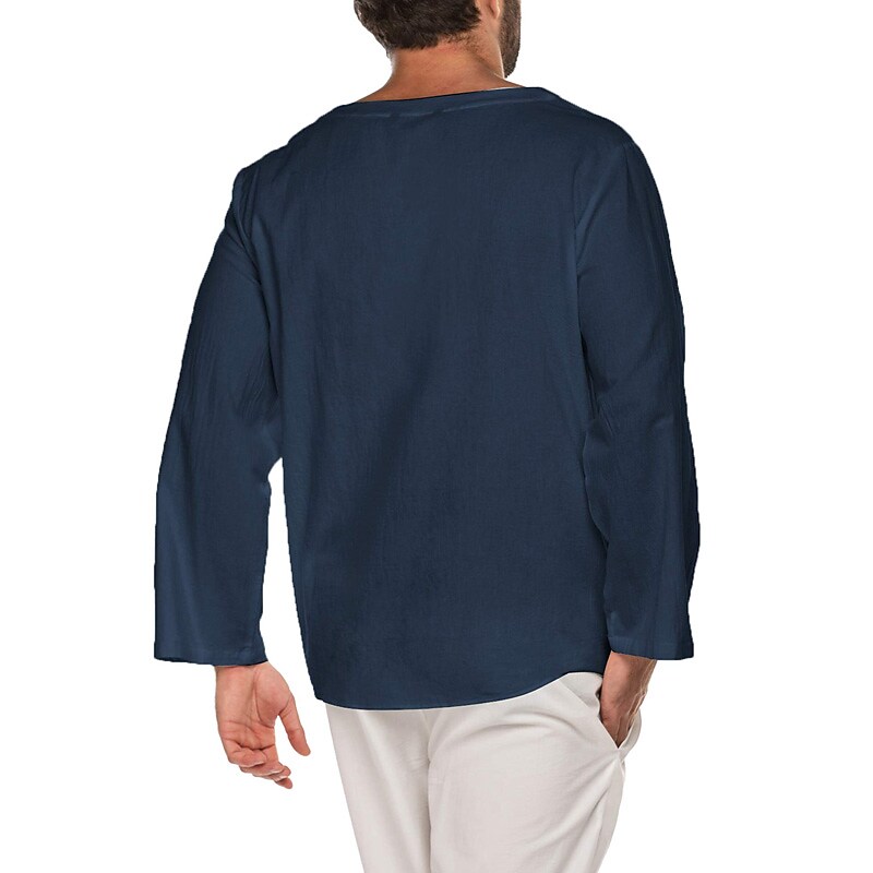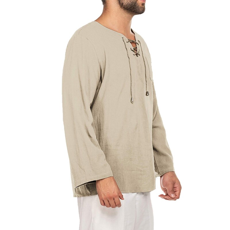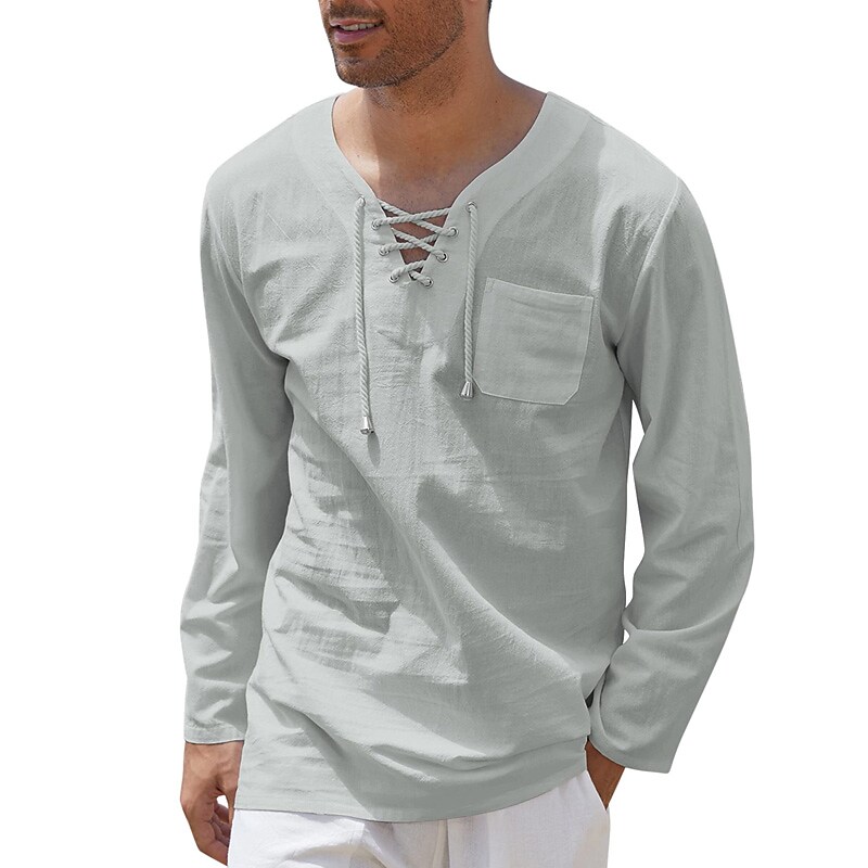 Men's Casual Shirt Linen Cotton Solid Color V Neck Street Casual Daily Drawstring Long Sleeve Tops Classic Comfortable Breathable Beach Holiday White Gray Spring Summer