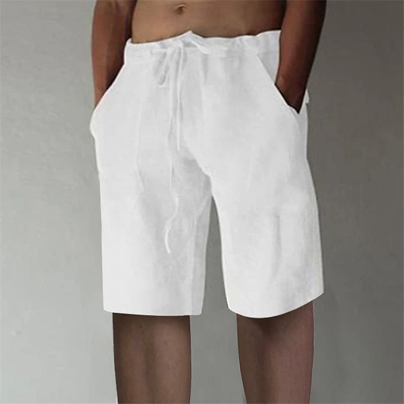 Men's Classic Style Fashion Straight Trousers Elastic Drawstring Design Front Pocket Knee Length Pants Casual Daily Solid Colored Cotton Blend Comfort Soft Mid Waist Green White Gray Khaki M L XL XXL