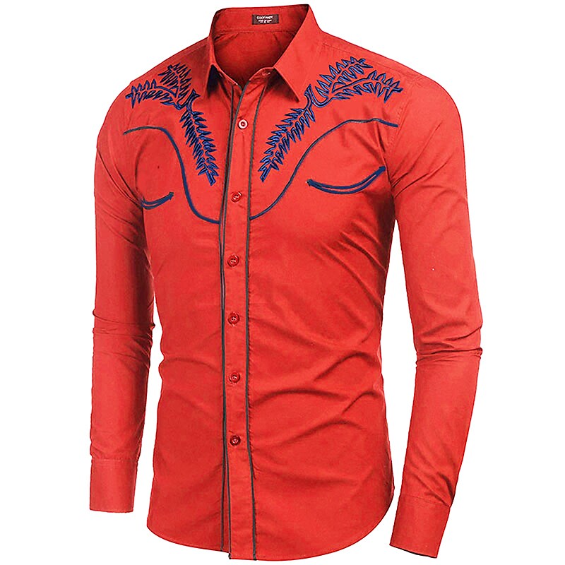 Men's Dress Shirt Floral Turndown Street Daily Button-Down Long Sleeve Tops Fashion western style Breathable Comfortable Black Khaki Red