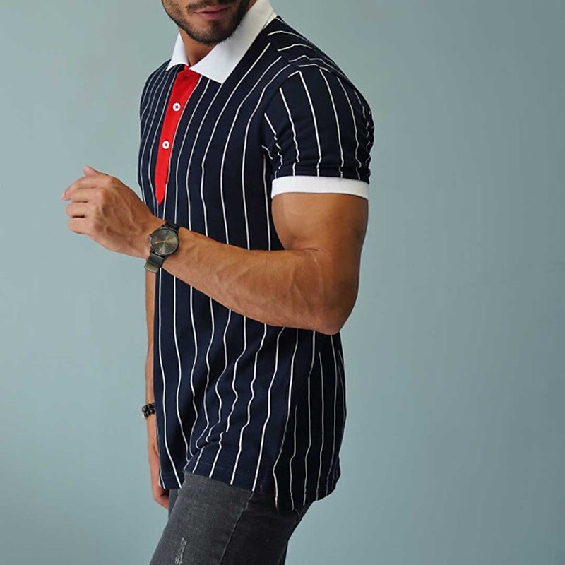 Men's Golf Shirt Striped Turndown Street Casual Button-Down Short Sleeve Tops Casual Fashion Breathable Comfortable Navy Blue