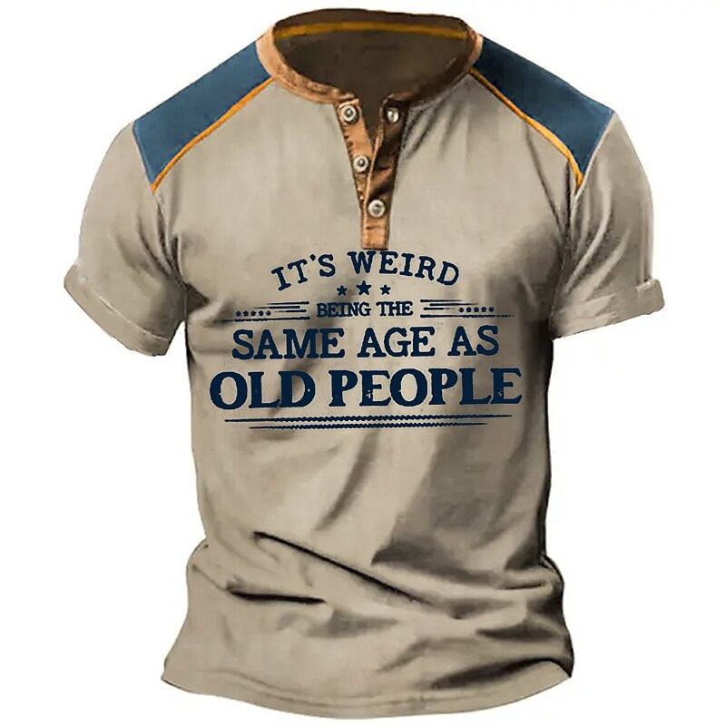 Men's Henley Shirt Graphic Letter Henley Clothing Apparel 3D Print Outdoor Daily Short Sleeve Button-Down Print Fashion Designer Comfortable