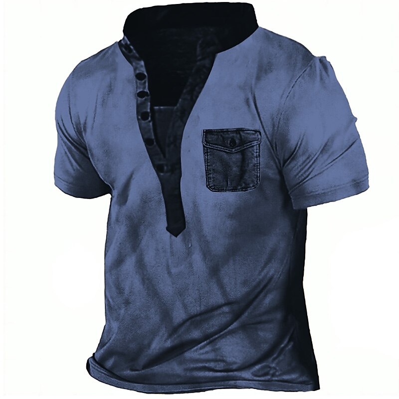 Men's Henley Shirt Tee Top Color Block Henley Street Vacation Short Sleeves Clothing Apparel Fashion Designer Basic
