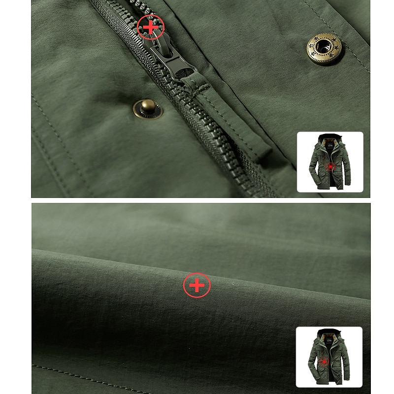 Men's Hiking Fleece Jacket Winter Jacket Thick Warm Hooded Parka Military Windbreaker Outdoor Detachable Cap Black Trench Coat Outerwear Hunting Ski Snowboard Camping Caving Army Green Khaki Blue