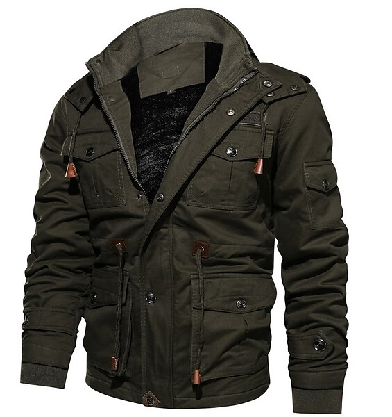 Men's Jacket Regular EU / US Size Coat Black Army Green Khaki Daily Stand Collar Regular Fit S M L XL 2XL 3XL / Long Sleeve