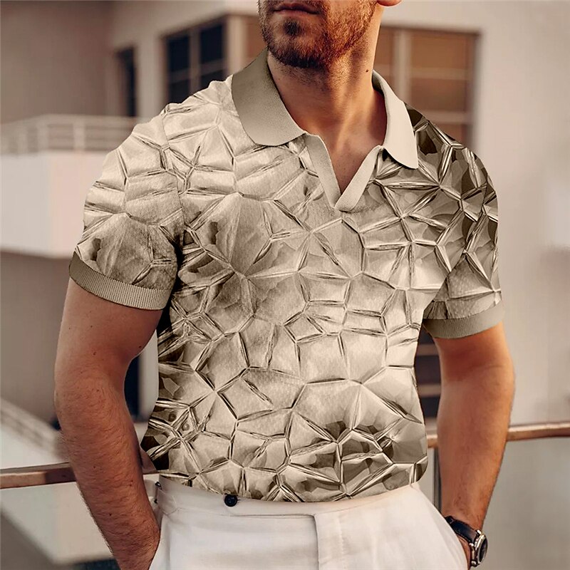 Men's Polo Shirt Golf Shirt Optical Illusion Graphic Prints V Neck Blue Green Khaki Gray Outdoor Street Short Sleeves Print Clothing Apparel Sports Fashion Streetwear Designer