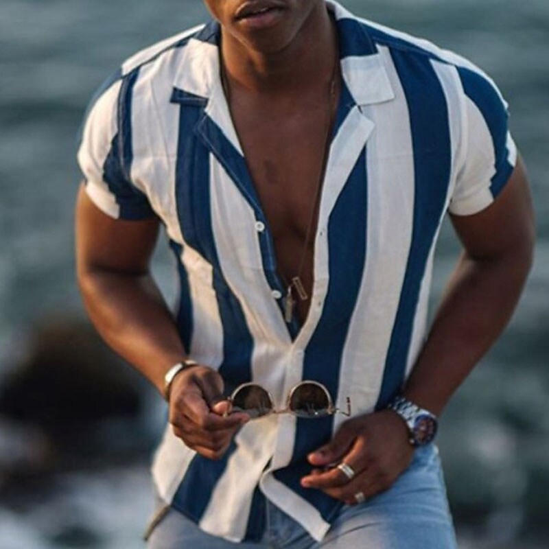 Men's Shirt Bowling Shirt Color Block Turndown Street Casual Button-Down Print Short Sleeve Tops Casual Fashion Breathable Comfortable Black Khaki Blue / White