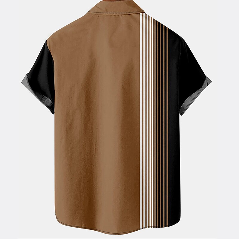 Men's Shirt Color Block Turndown Street Casual Button-Down Short Sleeve Tops Casual Fashion Breathable Comfortable Brown