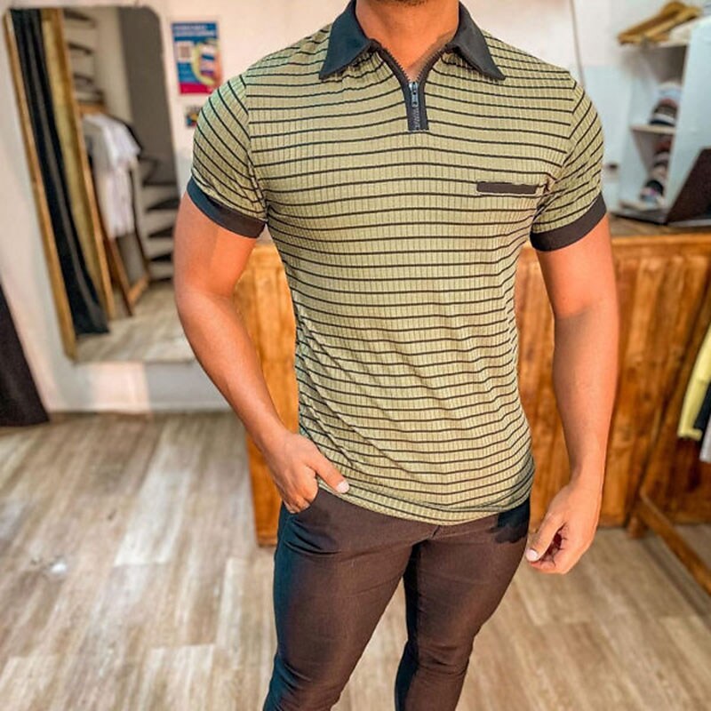 Men's Shirt Striped Turndown Street Casual Zipper Short Sleeve Tops Casual Fashion Breathable Comfortable Blue-Green