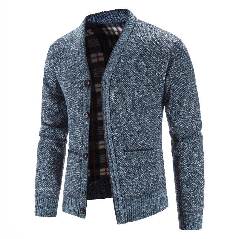 Men's Sweater Cardigan Fleece Sweater Knit Knitted Solid Color V Neck Stylish Daily Clothing Apparel Winter Red Blue S M L
