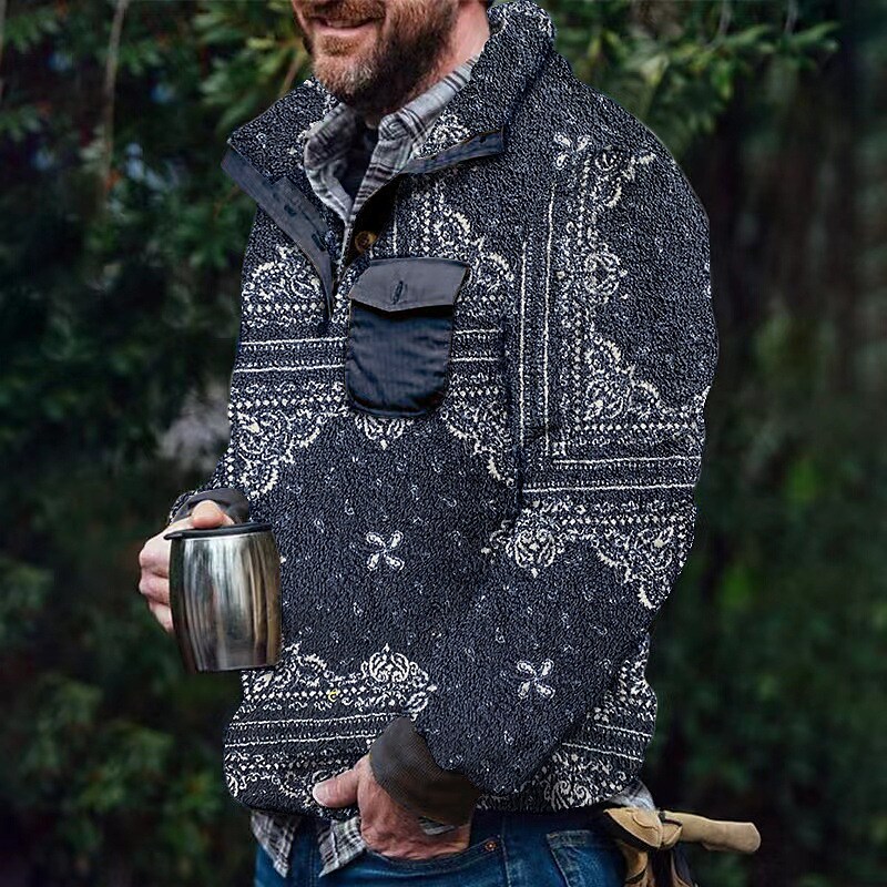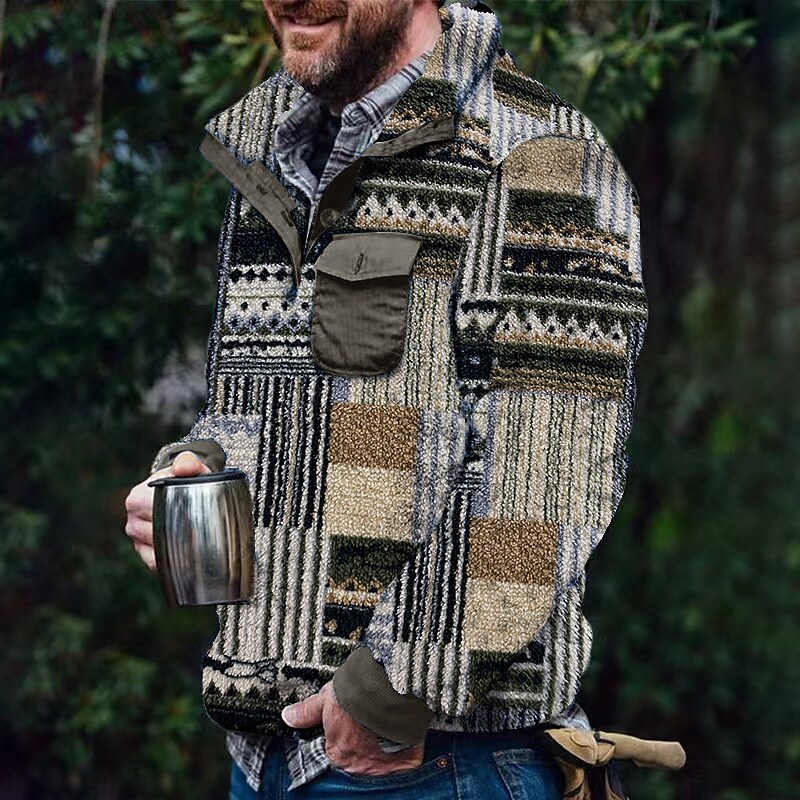 Men's Sweatshirt Color Block Turndown Light Green Light Brown Khaki Light gray Dark Gray Casual Vacation Long Sleeve Print Clothing Apparel Fashion Casual / Winter