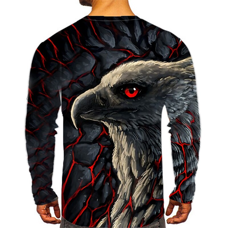 Men's T shirt Tee 3D Print Eagle Animal Crew Neck Street Casual Print Long Sleeve Tops Sportswear Casual Fashion Comfortable Black / Summer / Spring / Summer
