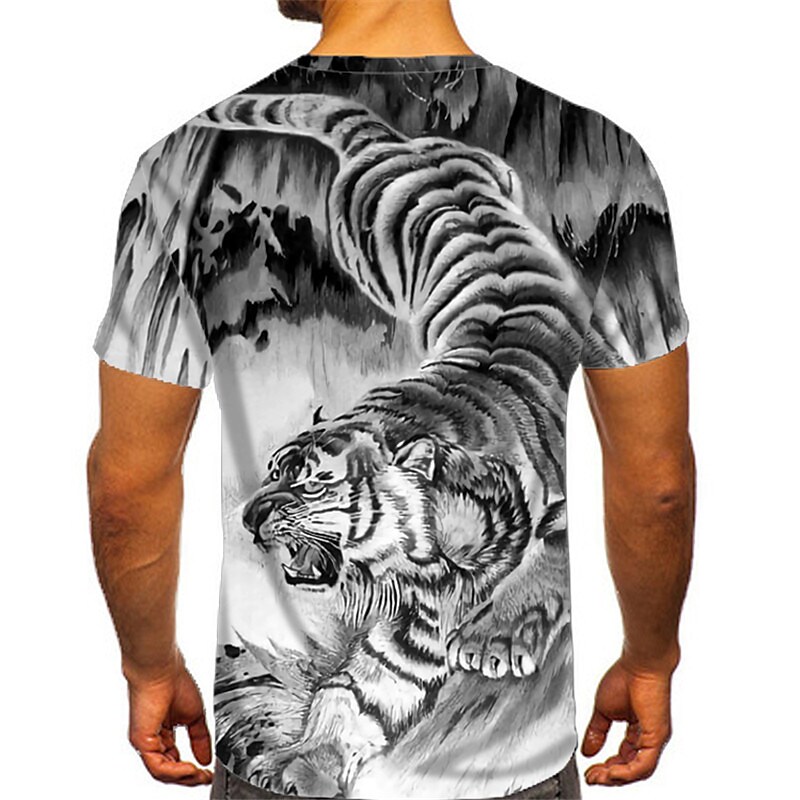 Men's T shirt Tee 3D Print Tiger Animal Crew Neck Street Casual Print Short Sleeve Tops Sportswear Casual Fashion Comfortable Gray / Summer / Spring / Summer