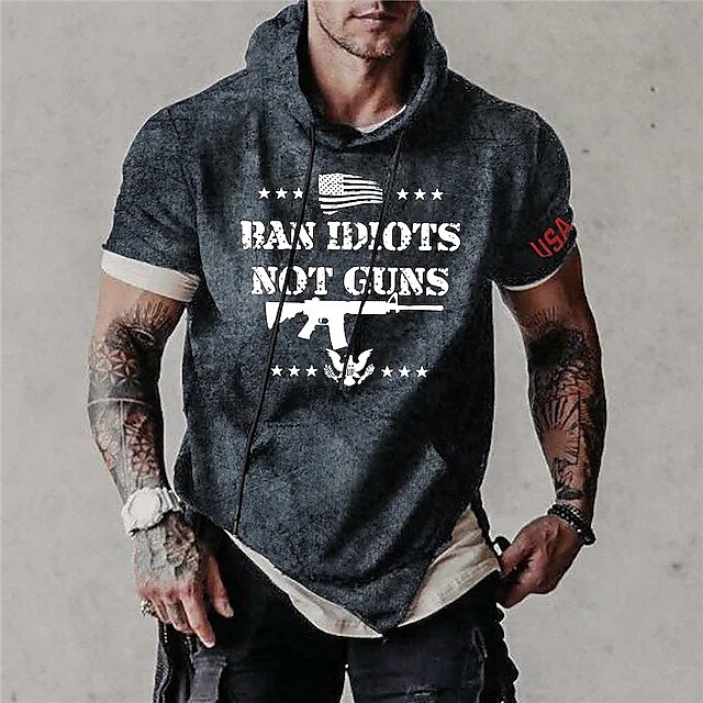 Men's T shirt Tee Letter Hooded Vacation Work Tops Casual Black Blue Gray / Winter