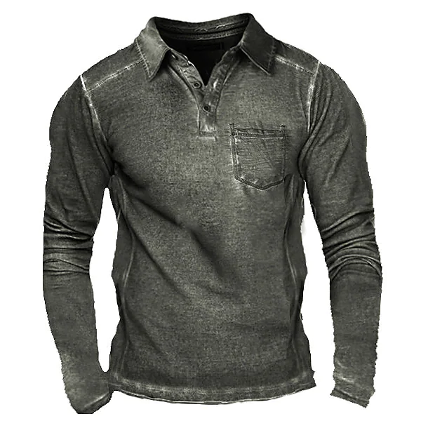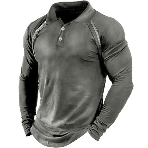 Men's T shirt Tee Letter Turndown Vacation Work Tops Casual Gray Army Green Khaki