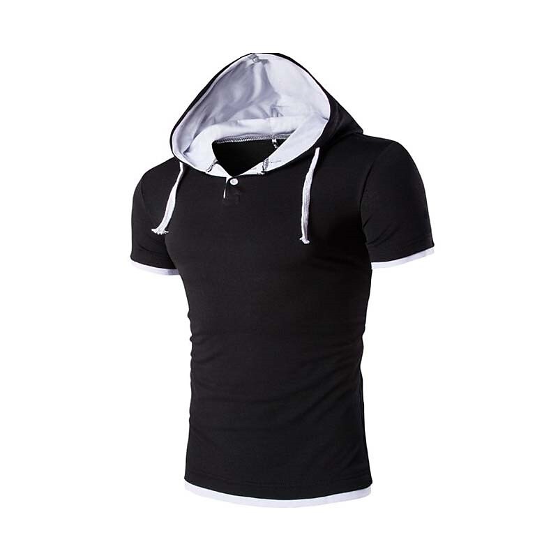 Men's T shirt Tee Solid Color Hooded Casual Daily Short Sleeve Tops Cotton Lightweight Fashion Big and Tall Sports Black / Red Black / White Blue / Summer / Summer