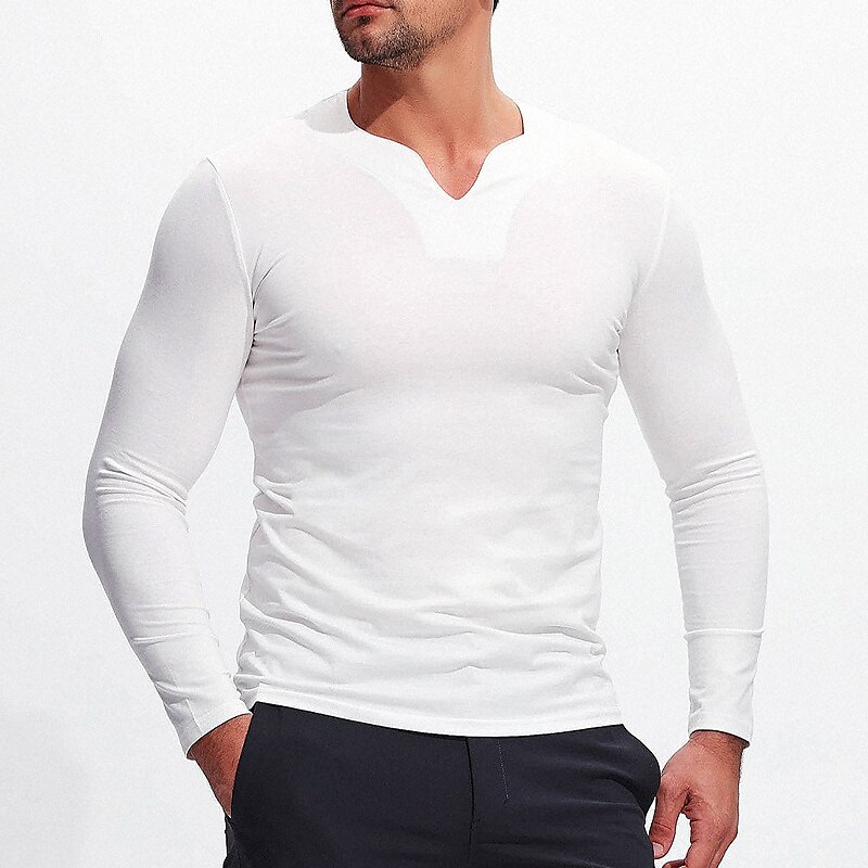 Men's T shirt Tee Tee Top Long Sleeve Shirt Plain V Neck Street Vacation Long Sleeve Clothing Apparel Fashion Designer Basic