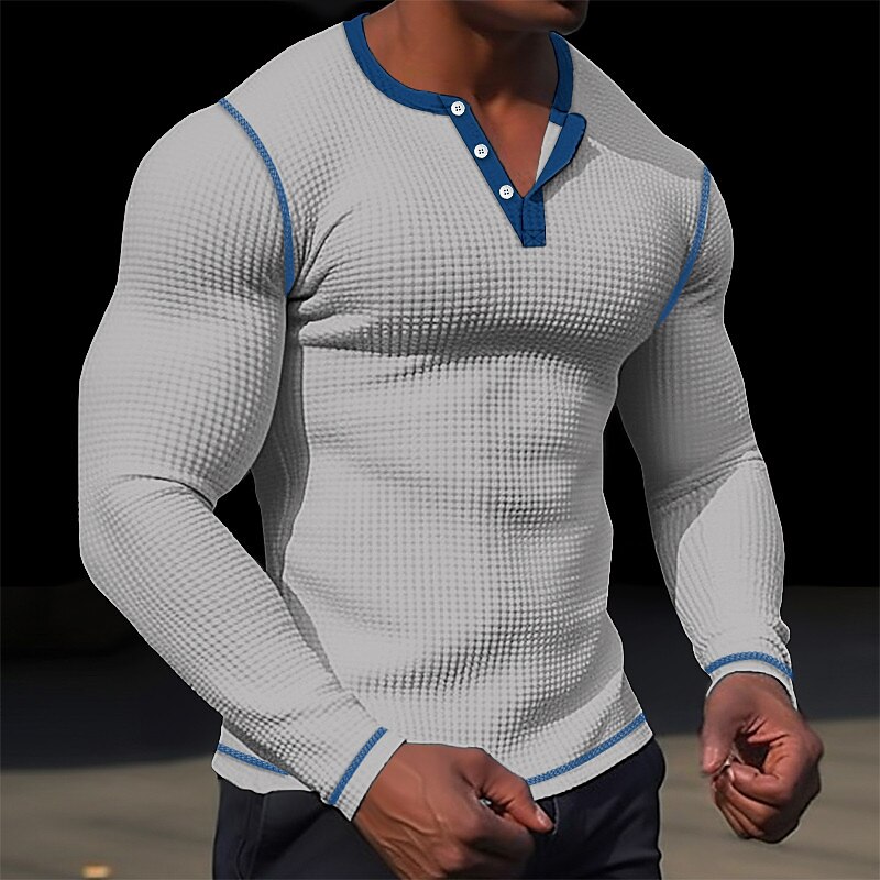 Men's T shirt Tee Waffle Henley Shirt Henley Shirt Tee Top Long Sleeve Shirt Plain Raglan Sleeve Henley Street Vacation Long Sleeve Patchwork Clothing Apparel Fashion Designer Basic
