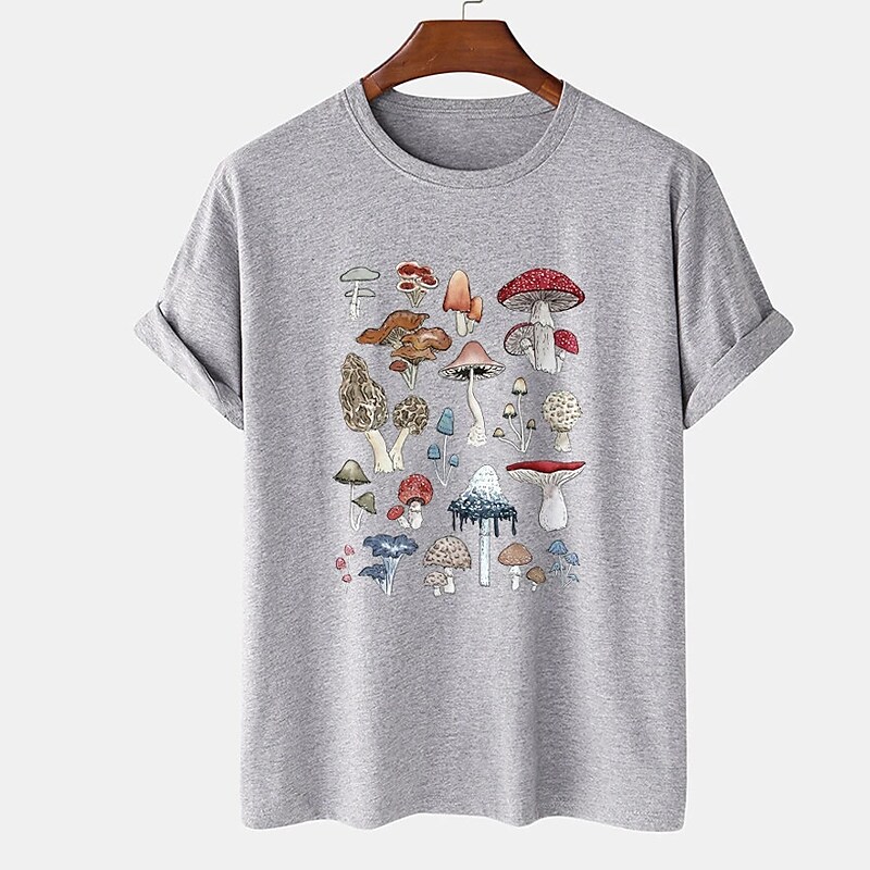 Men's Unisex Tee T shirt Tee Hot Stamping Graphic Prints Mushroom Plus Size Round Neck Casual Daily Print Short Sleeve Tops Basic Designer Big and Tall White Black Gray / Summer